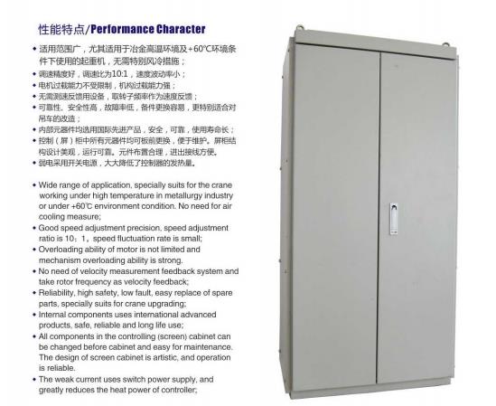 起重机定子调压调速控制(屏)柜是利用公司研发生产的起重机定子调压调速控制器对起重机各机构电动机进行控制的电气(屏)柜。起重机定子调压调速控制(屏)柜产品适用于冶金、矿山、铁路运输、港机、建筑、化工、石油等行业,主要是控制起重机各机构上运行的各种绕线电动机的驱动、调速和控制的专业产品,特别适用于重级工作制度和处于恶劣环境中的起重机的驱动、调速、控制的专业产品。